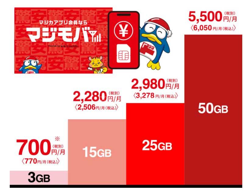 マジモバは、ドンキホーテの競争力のある価格設定を反映し、スマートフォンやSIMカードを他の大手キャリアに比べて低価格で提供しています。