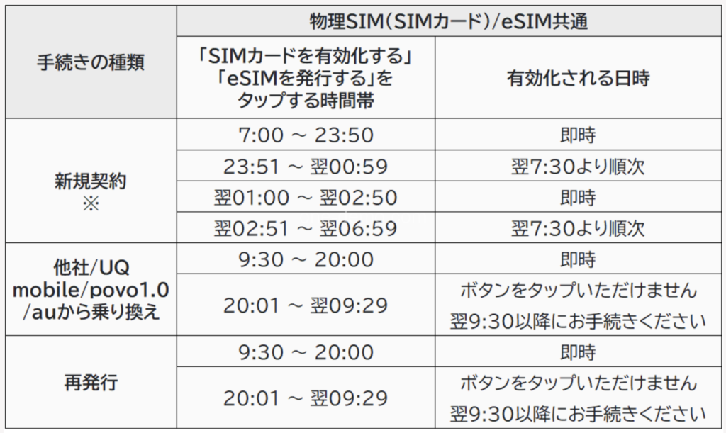 povoの利用を開始するにはpovo2.0アプリよりSIM有効化の手続きが必要です。手続きできる時間が決まっているので、それに合わせて手続きをします。