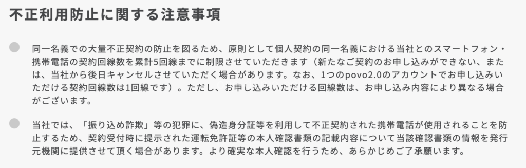 - 1つのpovo2.0アカウントでは1回線しか申込できない