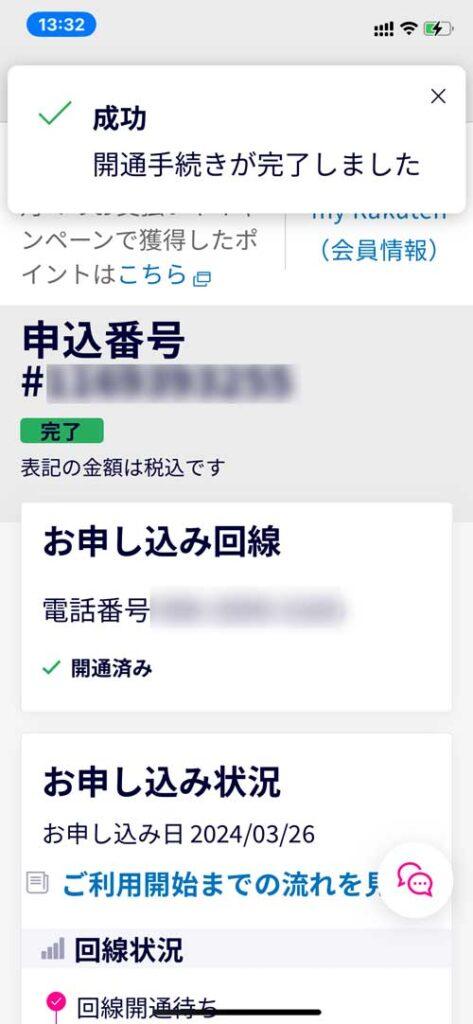 8、回線の設定が「開通済み」となるまでしばらく待つ。「開通済み」と表示されたら機種変更は完了です。
