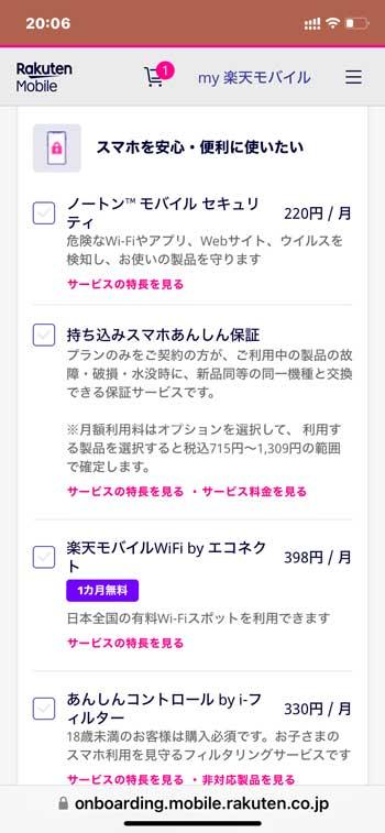 4、その他のオプションサービスで必要なもにチェックを入れる