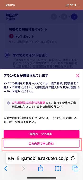 11、スマホ本体も一緒に申し込みたい人は「製品ページへ進む」をタップすれば、ここからでも商品ページに飛べます。SIMのみの人は「この内容で申し込む」をタップ。